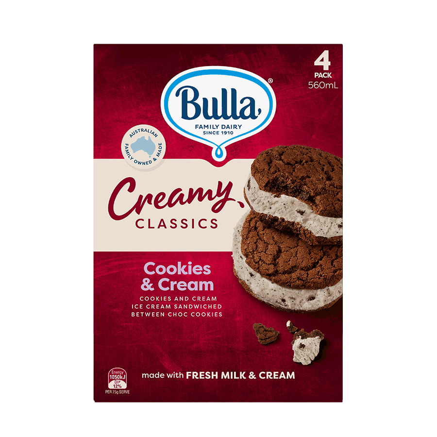 You can’t fake that some things are better together. Like Cookies and Cream flavoured ice cream, sandwiched between two chewy choc cookies.