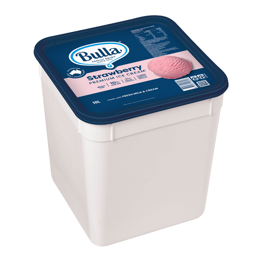 Bulla’s commercial recipe ice cream is a unique recipe containing 10% milk fat. Bulla Premium Ice Cream is a premium quality ice cream that is made with fresh milk and cream for a deliciously creamy taste. This product is now made with no artificial colours & flavours, halal certified and gluten free so it can be enjoyed by even more people.